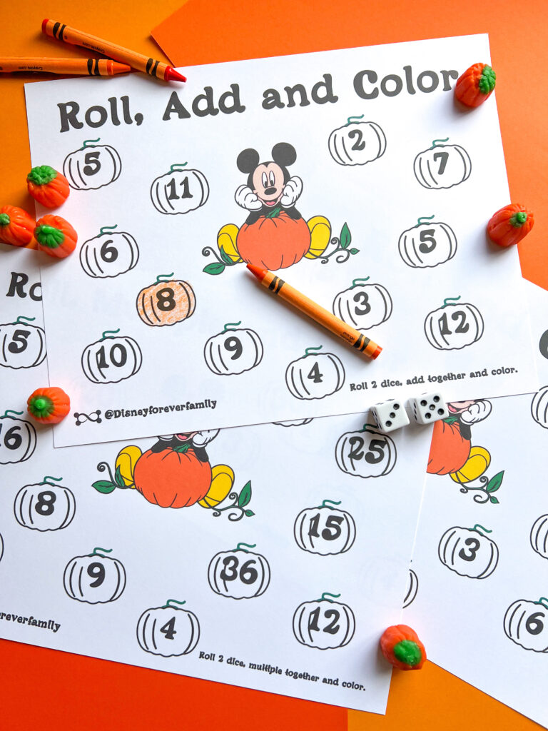 - Take turns rolling the dice and coloring the number. If a number is already colored, it’s the other person’s turn.